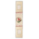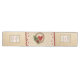 This sophisticated table runner has gold glitter on each side and a framed quote: Christmas isn't a season, it's a feeling. The centre is a beautiful gold and white damask with a glitter red heart encircled by a beautiful grapevine wreath wrapped in pine needles and red flowers.