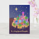 Une joyeuse carte de Noël pour une Fille Très Spéciale, avec un ciel étoilé, les trois sages sur leurs chameaux au loin, et Joseph, Marie et un âne se frayant un chemin dans la petite ville de Bethléem aux couleurs vives. Le lettrage, la Joie de Noël et les étoiles sont en peinture à effet or (pas en feuille d'or). Un design multimédia de Judy Adamson.