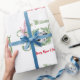 Add the personal touch to all your holiday wrapping with this JOY-ful wrapping paper that features your favourite family photo inside an evergreen wreath with a few red berries. The J and Y of the word JOY are in an ancient-looking font in a foresty green colour, crisp against a white background. Your favourite photo of the year fits inside the evergreen wreath. Also in the ancient script, you add your surname, while in a modern, fun red script you add your first names. At the bottom tip of the Y is the year. The grouping repeats in rows across the roll of paper. Personal and perfect for wrapping all your pretty presents this Christmas season.