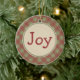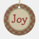 Red and green gingham gives this joy ornament country Christmas style. The design is from original art.