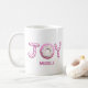 Find the word joy spelled out of pink candy canes on this simply delicious Christmas coffee mug. You can easily add personalization for a unique touch, and create a great holiday for the your loved ones.