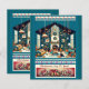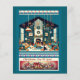 A cozy living room is decorated for Christmas with a warm fireplace and a beautifully adorned tree, surrounded by family and gifts. Festive garlands and candy canes hang from the ceiling, adding to the cheerful atmosphere. A greeting at the bottom wishes "Christmas Joy To You!"