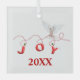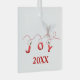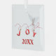 White dove with red and white striped string and Christmas JOY text on a white background for a holiday party.