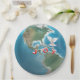 White dove with red and white striped string and Christmas JOY text on a world globe.