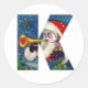 CHRISTMAS K LETTER / SANTA CLAUS BUGLER CLASSIC ROUND STICKER
