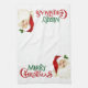 This kitchen towel is shown in white with an adorable Santa's face along with red and green coloured text of Merry Christmas. Images are on both ends of towel.