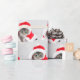 Christmas Kitten In Hat On Grey Wrapping Paper