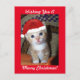 Adorable photo of a cute kitty wearing a Santa's cap and sending wishes for a Merry Christmas is featured on this postcard. A great way to send holiday greetings to all your family and friends!