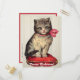 This design features a vintage image of a kitten sitting on a red pillow and wearing a red bow.