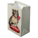 Christmas Kitten Sitting Wearing a Red Bow Medium Gift Bag