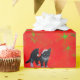 Christmas kitty cat black and white Tuxedo - painting kitten art on wrapping paper.