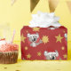 Christmas wrapping paper with illustration of cute little koala bear with Santa's hat in red circle, Christmas holidays design for children, illustrated by Radka Kavalcova