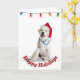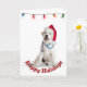 Cute labrador retriever with Happy Holidays text, Santa Claus hat, and stethoscope on white background