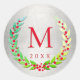 Christmas Laurel Wreath Berries Monogrammed Classic Round Sticker