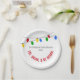 Entertain in style with this modern holiday design. A swag of old-fashioned Christmas lights in red, blue, green and yellow spans the top edge of the plate. The words 'Eat, drink, and be merry!' have been added in red, but this saying can be deleted if desired. Add custom text to further personalize the design by using the easy provided text templates. Contemporary and festive, these plates would be a perfect compliment to any holiday buffet, cocktail party or family gathering!