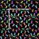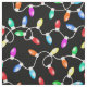 Classic, multi colour Christmas string lights make a festive pattern for the holiday season! These colourful light bulbs are on a white string that slightly twists and turns for a whimsical look. The design pops on a black background colour! You can change the size of the pattern and pick your own background colour on this custom fabric. Create your own Christmas decor, apparel, and more with this fun design!