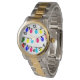 This women's watch has a Christmas design of three strings of old-fashioned Christmas lights.