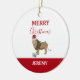 Christmas Lion Funny Animal with Santa Hat Ceramic Ornament