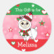 Cute Christmas Gift Tag. Little hand drawn cartoon llama with winter hat on with green and red background with stars and hears and the text, "This gift is for." Just add the recipient's name in the personalize area.