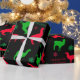 Cute holidays gift wrap with red and green Llamas or Alpacas and black background, with snowflakes and the saying, "La la la la LLama."