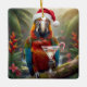 Christmas Macaw Parrot With Martini Cocktail Ceramic Ornament
