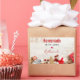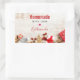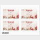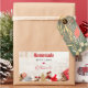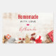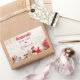 Made with love personalized stickers with a rustic photograph. A light brown wooden board with various Christmas elements along the bottom.