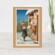 Designed by Susan Epps Oliver. Vintage image of a little girl wearing a green coat and a pink hat mailing her Christmas list to Santa Claus. Santa is watching her from inside the mailing office.