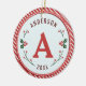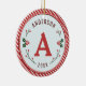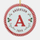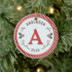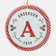 Vintage designed Christmas monogrammed ornament. Designed with red and green colours set against a light blue diagonal striped background. Surrounded by beautifully designed holly. Customize with your name, initial and year.