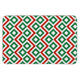 This bold green, white, and red geometric pattern is an original ornamental design perfect for Christmas. Green diamonds with white centres are surrounded by white meanders which angle around them. Red zigzags separate the winding white paths and offset diamonds.