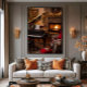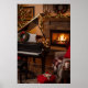 A Christmas piano in a cozy room, adorned with pine leaves and lights, next to a crackling fire. It's the perfect setting to play or listen to Christmas songs, embracing the magic of the season.