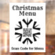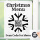 Christmas QR Code Menu Window Sign. Image is a Snowflake with QR Code