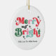 Christmas Merry And Bright Colourful Retro Holiday Ceramic Ornament