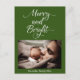 Minimal design with "Merry and Bright" in pretty modern white typography against a forest green background. You can easily personalize with a favourite family photo and family name on the front, as well as individual name signatures on the back. The back message reads "Wishing you Peace, Love and Joy."