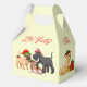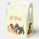 This favor gift box is printed on with an image of dogs on each panel along with festive text of Let's Party! on the front and back, and Merry