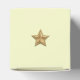 This favor gift box is printed on with a single Christmas tree in green. Festive text of Merry Christmas wraps around the box on ivory background with small decorative gold stars and a medium sized star graces the top.