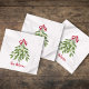 Mistletoe Holiday Paper Napkins This design features Christmas holiday merry mistletoe, botanical holiday greenery foliage, green leaves white holly berries, festive whimsical elegant celebration, family get together holiday party, simple minimalist party supplies, minimal calligraphy script typography, holiday Christmas paper cocktail napkin, artwork by Laura Lacina, trendy stylish