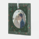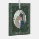 This romantic Christmas ornament features your personalized holiday photo with a festive mistletoe and red bow hanging over your custom kissing couple photograph. Add your own newlywed or engagement picture in the center of this beautiful green botanical holiday pattern. Customize this commemorative keepsake on the back in red and green script.