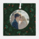 Christmas Mistletoe Cute Custom Couple Kiss Photo Glass Ornament
