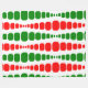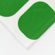 This large fleece blanket has a mid-century modern design of red and green rounded rectangles in increasing and decreasing size running vertically on a field of white.