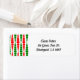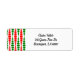 These Christmas return address labels have a mid-century modern design of red and green rounded rectangles in increasing and decreasing size running vertically on a field of white.