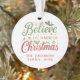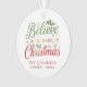 Celebrate the season with this “Christmas Modern Script Red and Green Typography Ornament.” Designed with festive script typography that reads “Believe in the Magic of Christmas” in green, gold, and red, surrounded by holly berries, gold snowflakes, shimmering stars, and cheerful red and green dots, this ornament brings classic holiday charm to your tree. Personalize with your family name or custom best wishes text in bold red typography on a crisp white background for a simple yet meaningful keepsake. A modern and festive way to say Merry Christmas while adding a personal touch to your holiday décor.