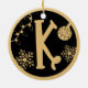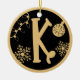 Christmas Monogram Letter K Gold Black Ceramic Ornament