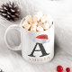 Celebrate the season with this elegant monogram Christmas mug featuring a classic serif letter topped with a cozy Santa hat. Personalize the name underneath for a warm, meaningful holiday gift. Perfect for hot cocoa, coffee, stocking stuffers, Secret Santa, teachers, grandparents, coworkers, and festive home décor. A simple, modern, premium Christmas design everyone loves.