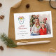 Cute Holiday greetings card featuring a hand painted watercolor crest with lemons and red berries Add your favourite family photo.