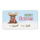 A whimsical moose wearing a scarf, standing in the snow. Most everything is editable. You can re-size or delete the "Merry Christmas" wording. Re-position the text below, if you need to make room for longer names or if you wish to choose different fonts. Matches my "Christmas Moose" collection.