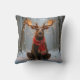 Christmas Moose Wearing Scarf and Lights Throw Pillow