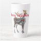 Watercolor moose with festive ribbon and holly on his bridle and customizable red "Merry Christmas" text