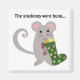 A cute Christmas mouse with pink ears and a cute expression. ready for his cheese. The saying can be changed as desired.