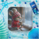 A small mouse wearing a red knitted sweater sits by a frosty window with a steaming cup of cocoa looking at the snowy outdoors