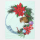 Cute brown mouse on a Christmas wreath. Ornaments, poinsettias, and blue Celtic knot work on the Christmas wreath.